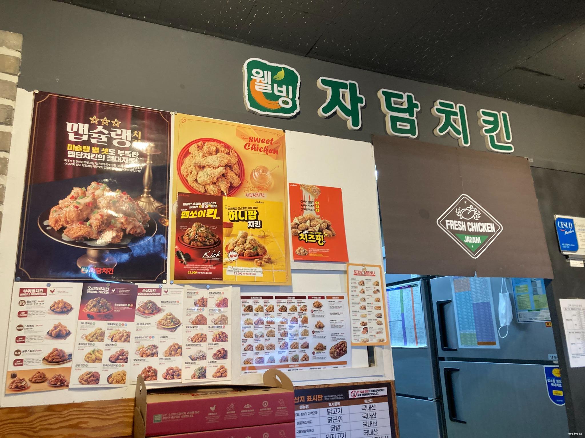 벽에 다양한 치킨 메뉴가 잘 정리돼 있어서 고르기 편했어요.