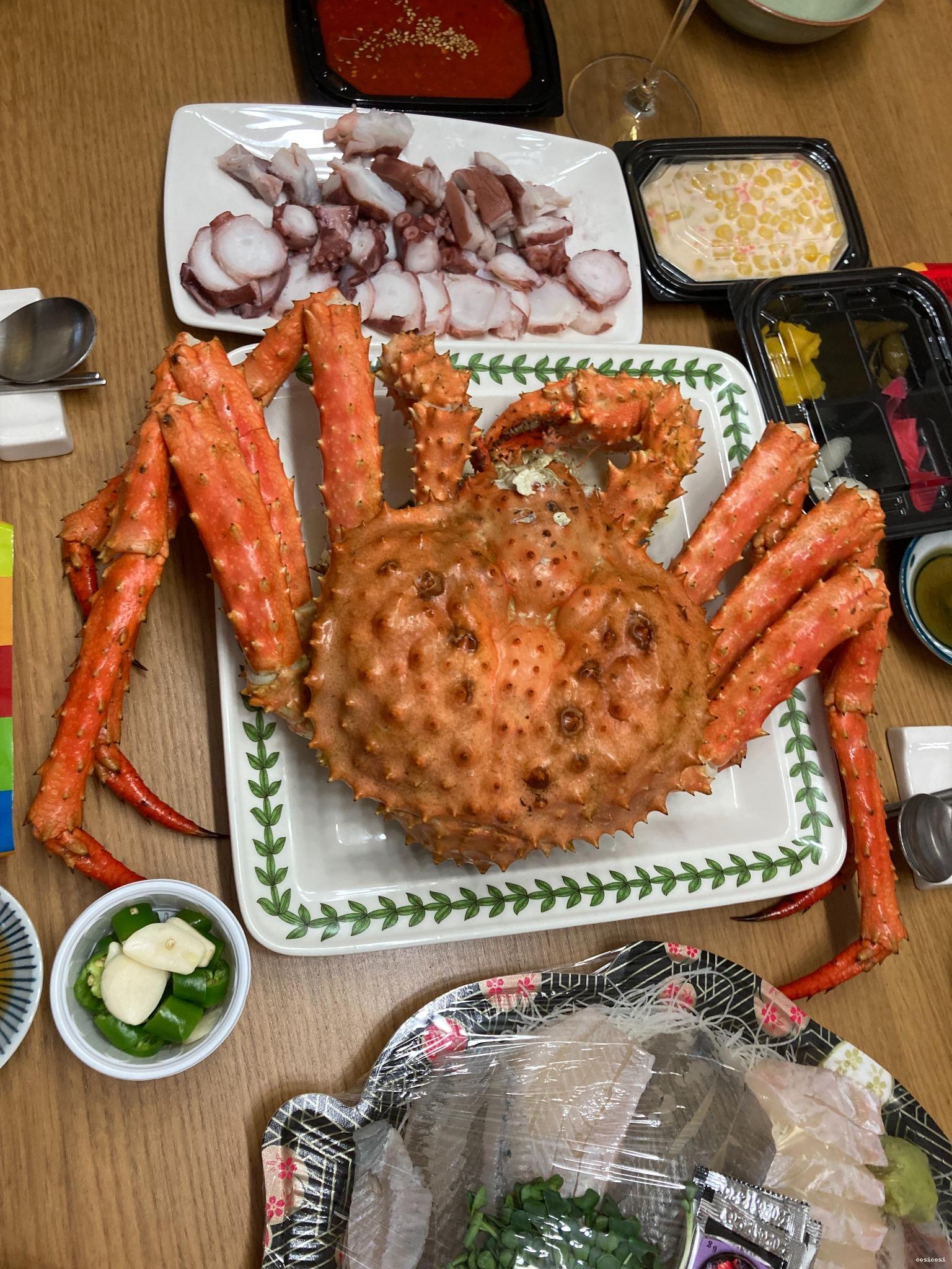 킹크랩은 껍질을 까자마자 살이 꽉 차 있는 게 보일 정도로 퀄리티 최고였고,