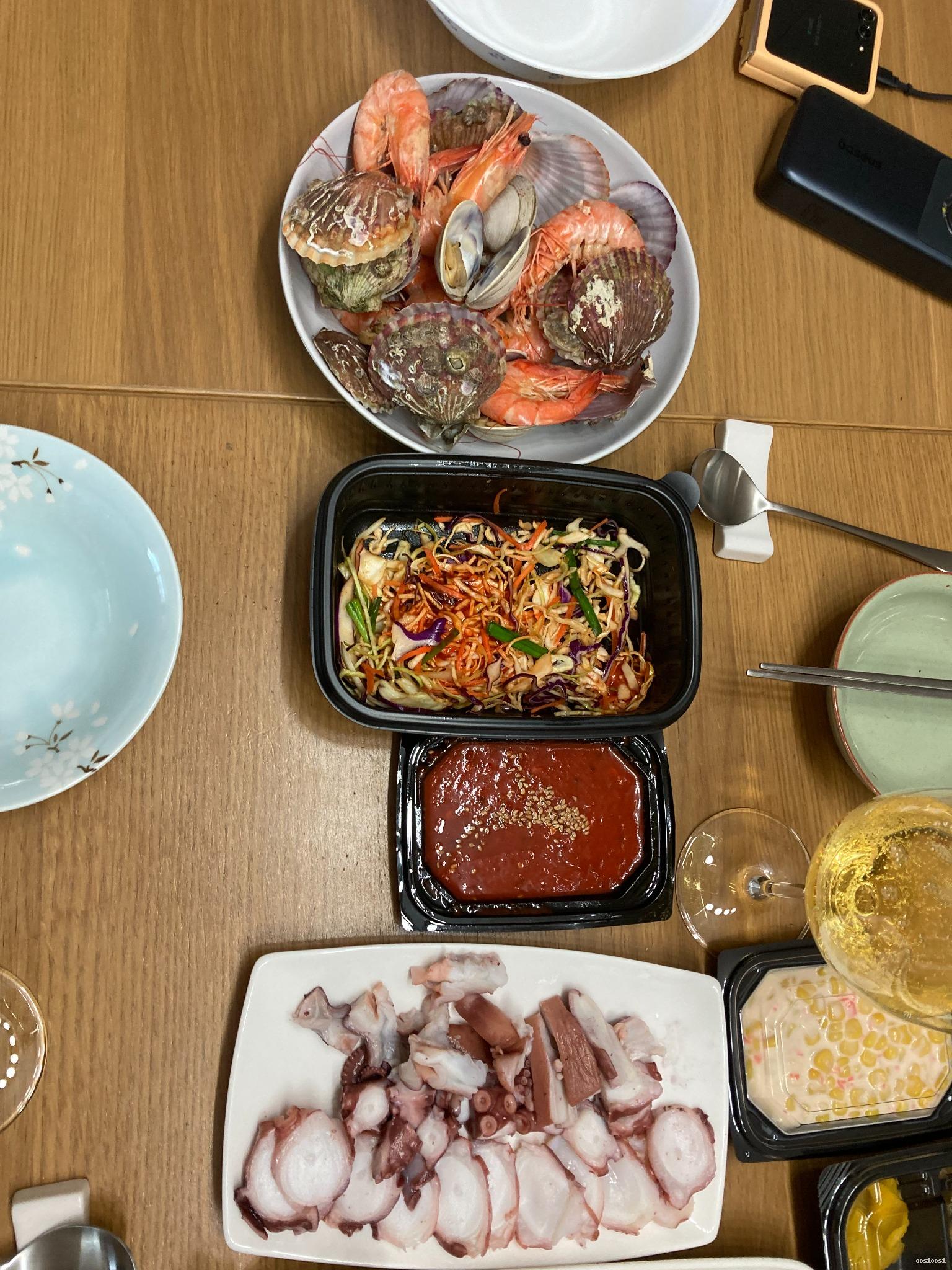 해산물 포장 + 와인 한 병 강력 추천드립니다!