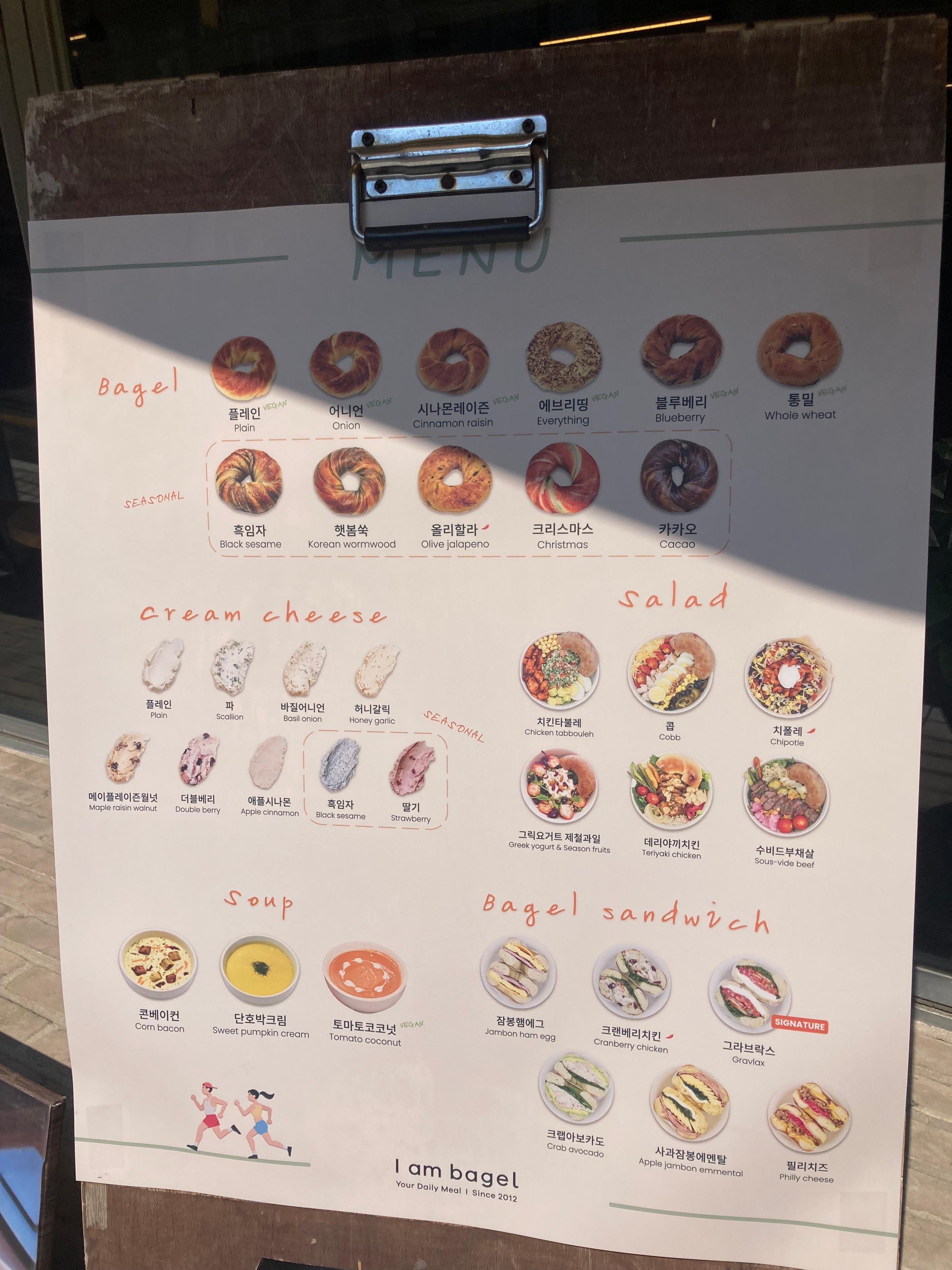 베이글은 계절 한정 메뉴도 있고, 크림치즈 종류도 다양해서