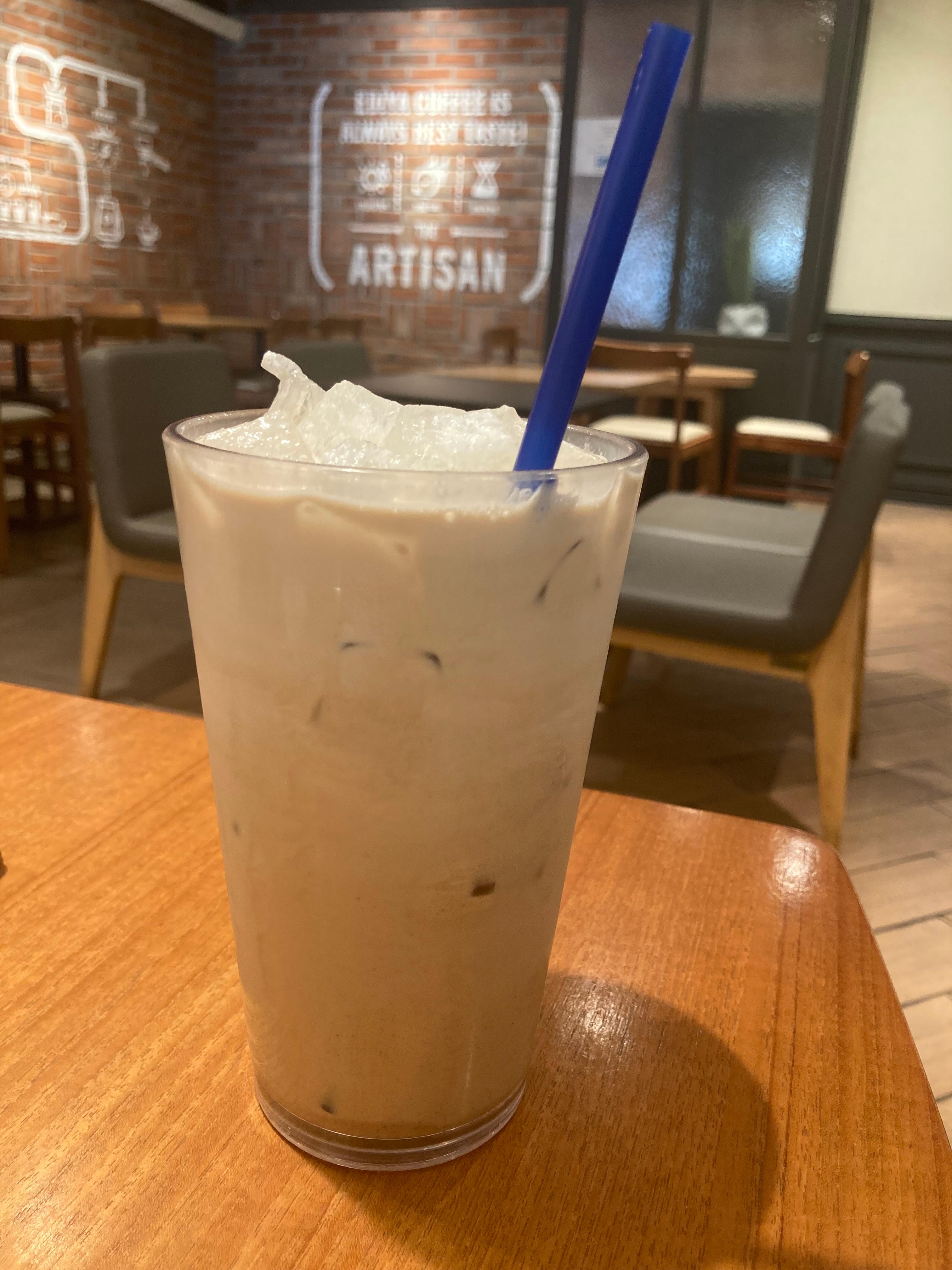 얼음도 꽉 차 있어서 마지막까지 시원하게 마실 수 있고, 위에 살짝 올라간 거품이 부드러움을 더해줍니다.